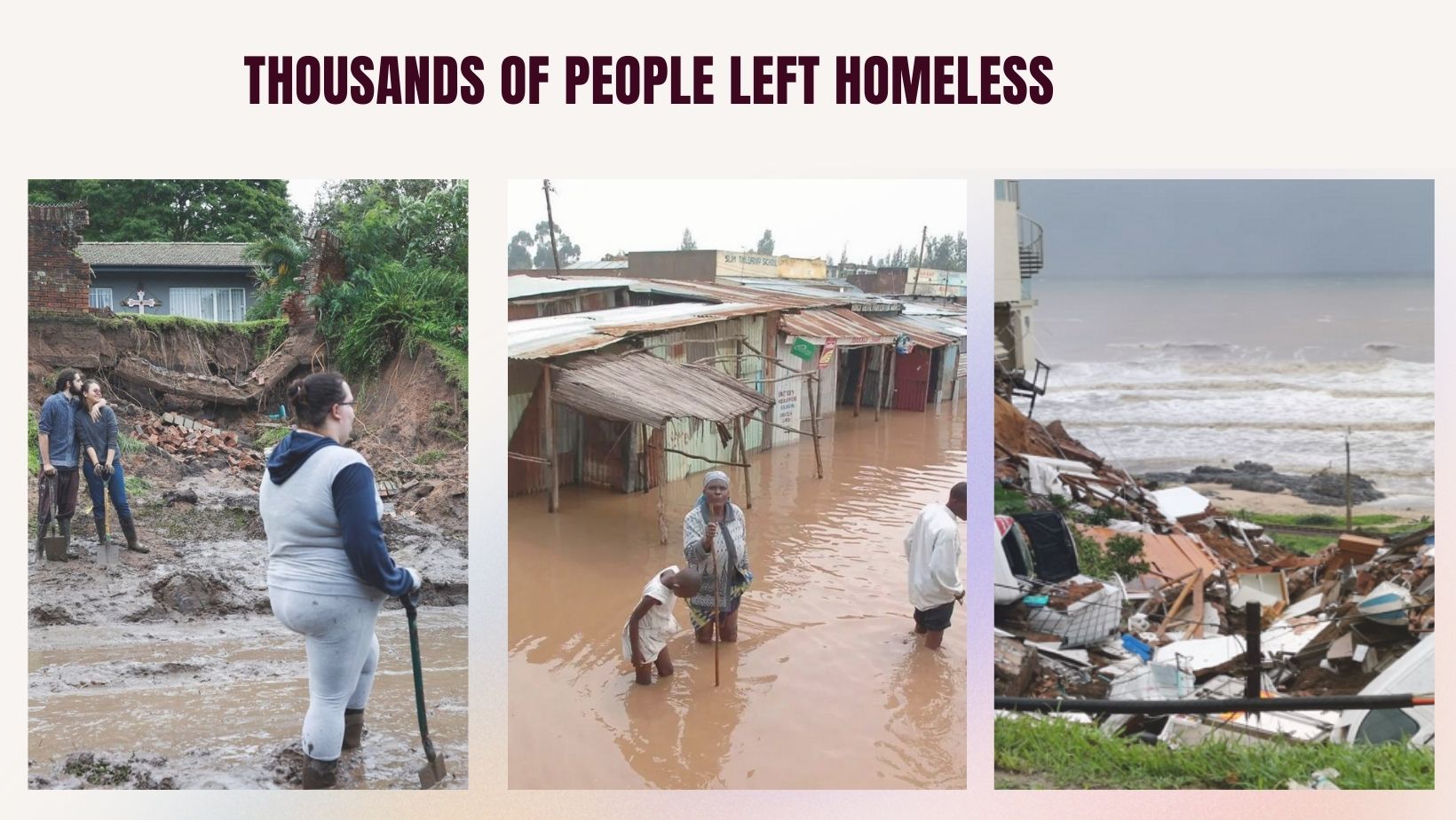 In April 2022, KwaZulu Natal was hard hit by one of the deadliest natural disasters since the 1987 floods, Heavy rainstorm and flash floods left thousands homeless and over three hundred people dead.
