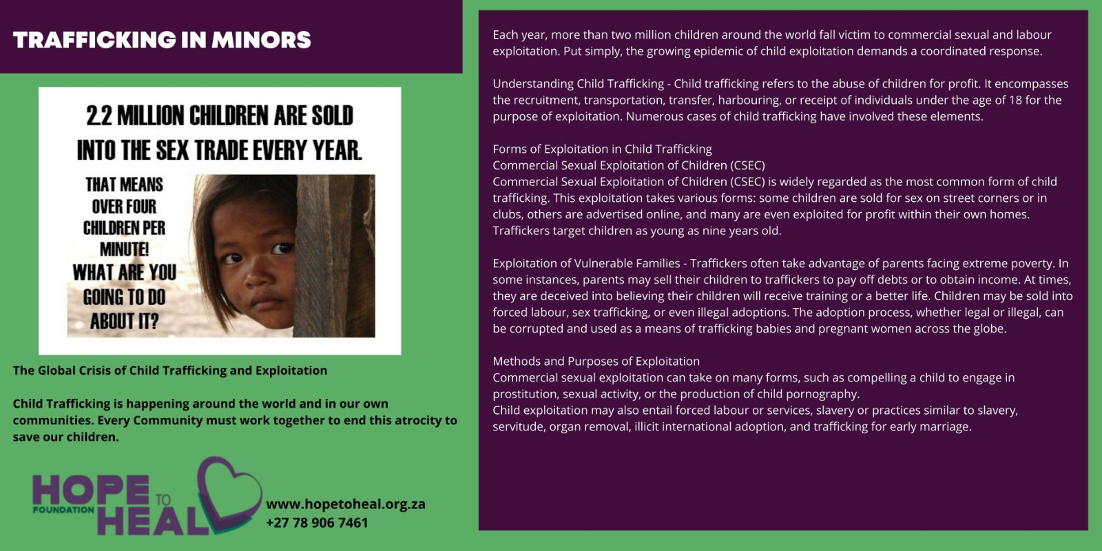 Human trafficking is one of the most horrendous crimes that can be committed especially when it involves children.