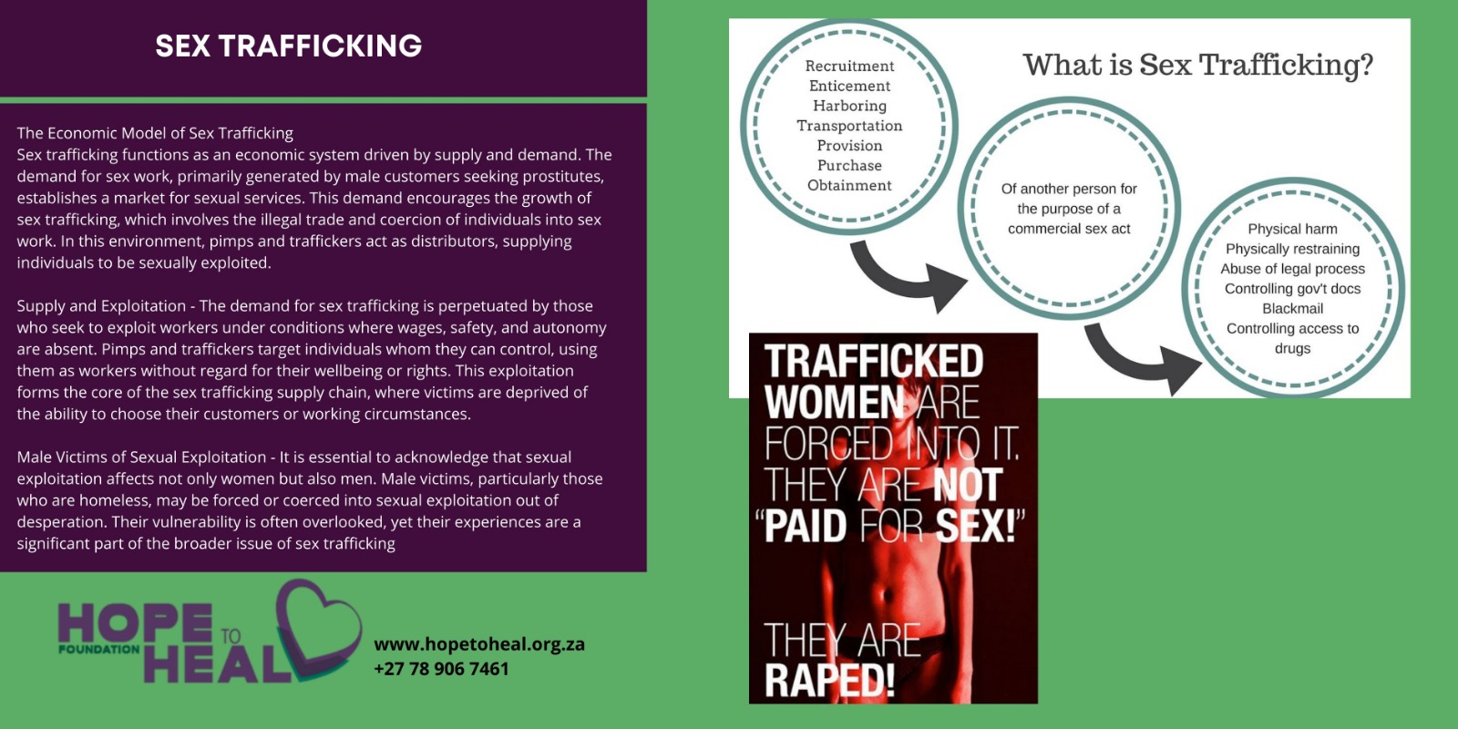 One must no exclude male victims of sexual exploitation. Victims of male sexual exploitation are homeless males, out of desperation, many are forced or coerced into sexual exploitation.